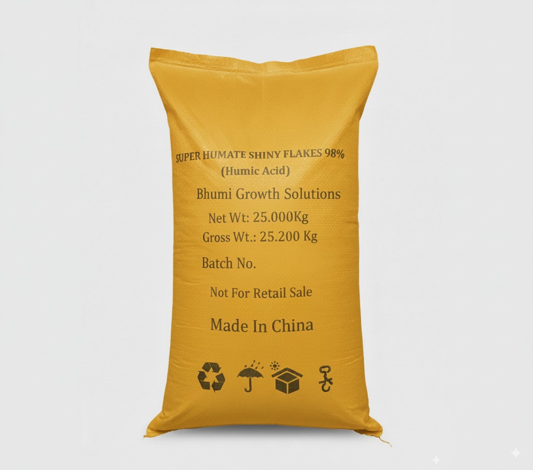 Bhumi Growth Solutions offers premium-grade Humic Acid Flakes 25kg Bags, available in both Made in India and Made in China variants to meet diverse market needs. These water-soluble flakes are derived from high-quality leonardite and are rich in natural humic substances that improve soil structure, enhance nutrient absorption, and boost microbial activity. Ideal for use in cereals, vegetables, fruits, and cash crops, they promote stronger root growth, higher yields, and better stress tolerance. Packaged in durable 25kg bags, our humic acid flakes are suitable for bulk supply to distributors, agri-retailers, and progressive farmers our humic acid 25kg price is very affordable, ensuring reliable performance and long-term soil health.