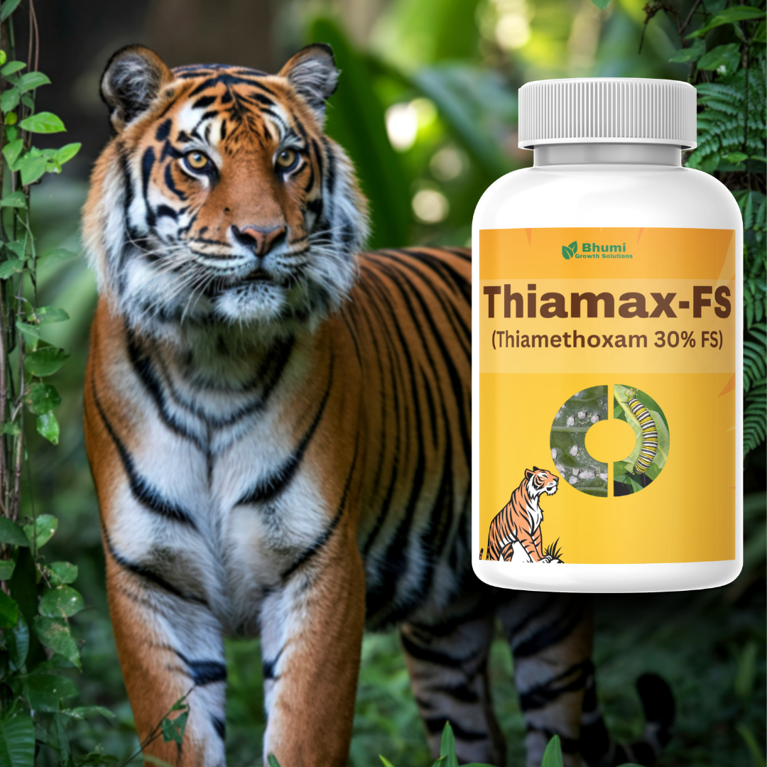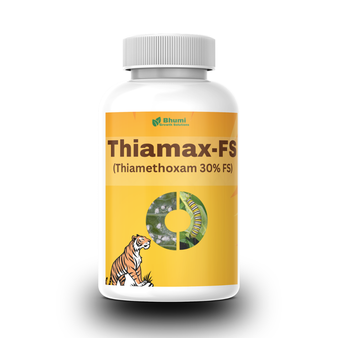 Thiamax-FS is Bhumi Growth Solutions’ advanced Thiamethoxam 30% w/v Flowable Suspension (FS) seed treatment insecticide — a second-generation neonicotinoid that is absorbed directly into the germinating seed and systemically translocated throughout every developing plant tissue as the crop grows. Unlike foliar sprays that work from the outside in, Thiamax-FS provides “inside-out” protection — the active ingredient is already present inside the plant when pest attack begins, eliminating the window of vulnerability between pest arrival and farmer response.